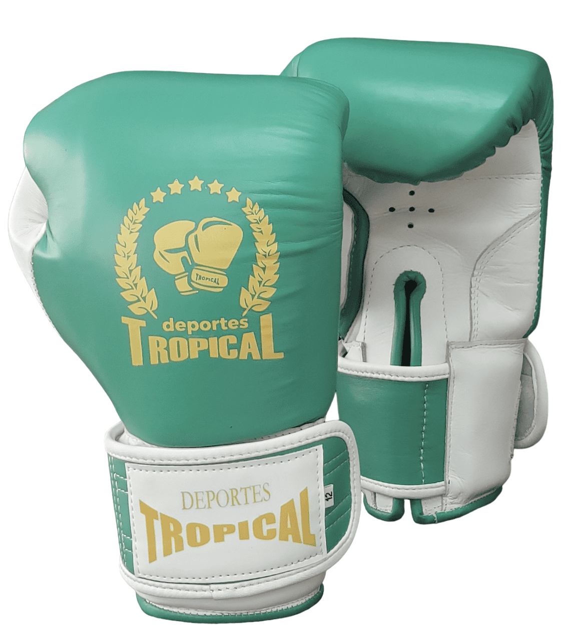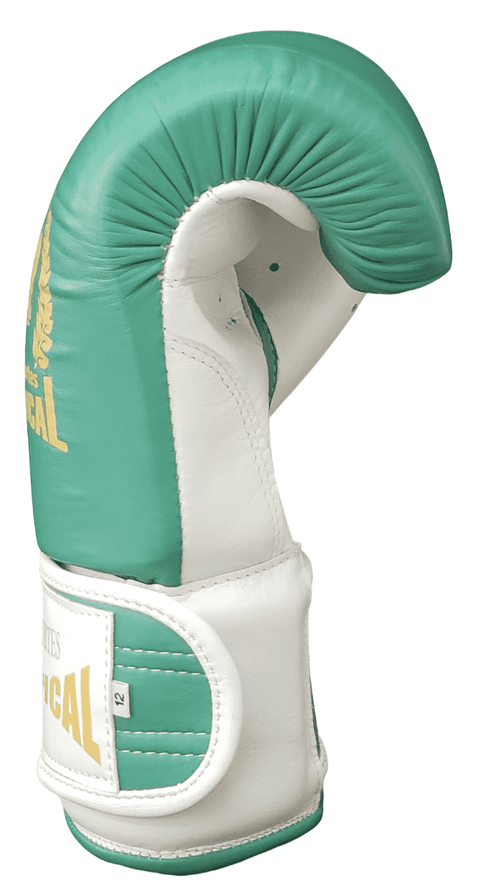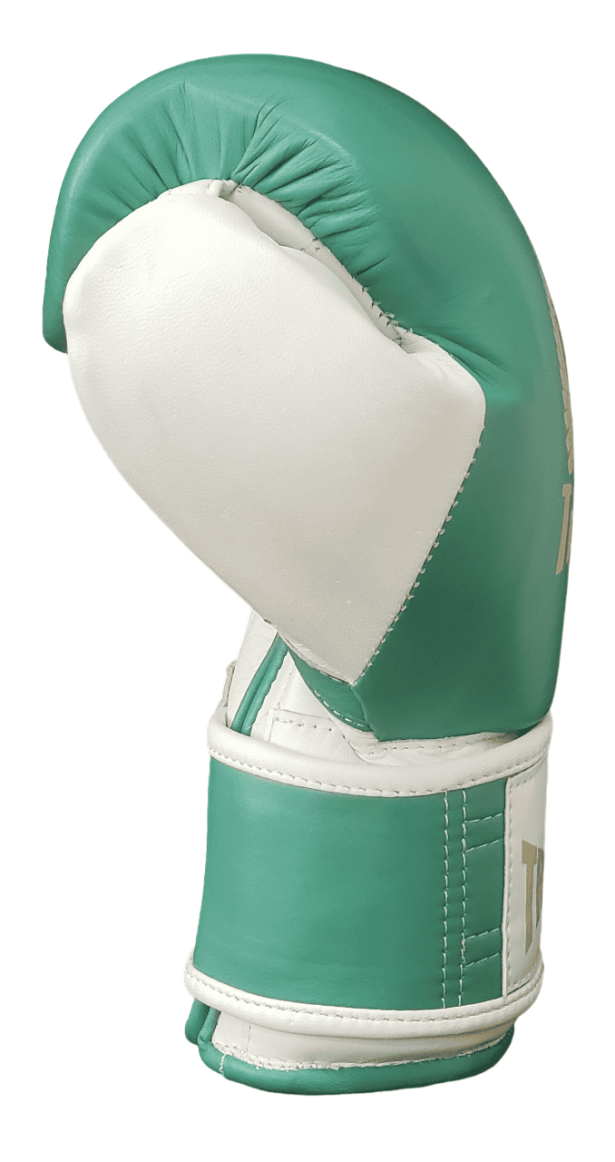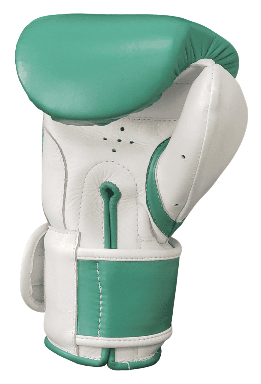 Guante de Boxeo en Cuero Natural con Cierre de Velcro Verde Esmeralda con Blanco.